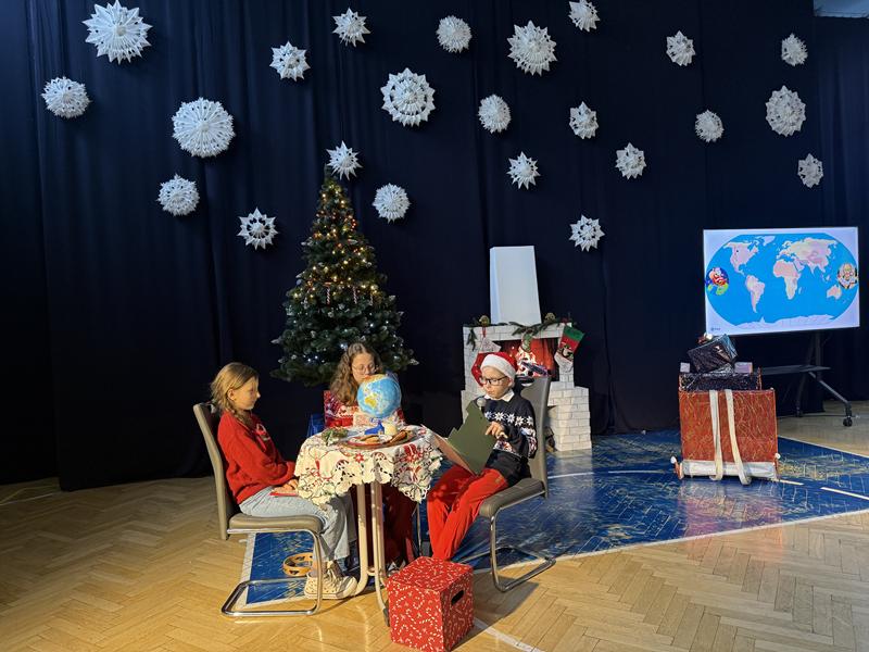 4 grudnia uczniowie klas 4–8 wzięli udział w wyjątkowym przedstawieniu mikołajkowym pt. „Tradycje mikołajkowe w różnych częściach świata”. Wydarzenie zostało przygotowane przez uczniów klas 4e i 6b pod opieką wychowawców. Gościnnie w roli Świętego Mikołaja wystąpił uczeń klasy 6b – Mikołaj Słotwiński.